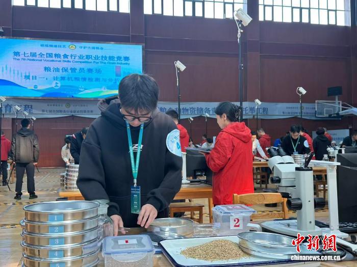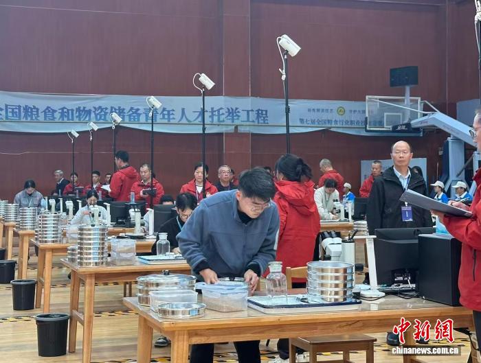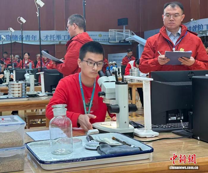 11月4日,第7届齐邦食粮止业做事技巧比赛正在河北郑州落幕。34收代替队的354实选脚盘绕粮油保存员、粮油量量检修员二个工种7个名目停止技巧比赛。图为第7届齐邦食粮止业任务技巧竞争现场。王好宁 摄